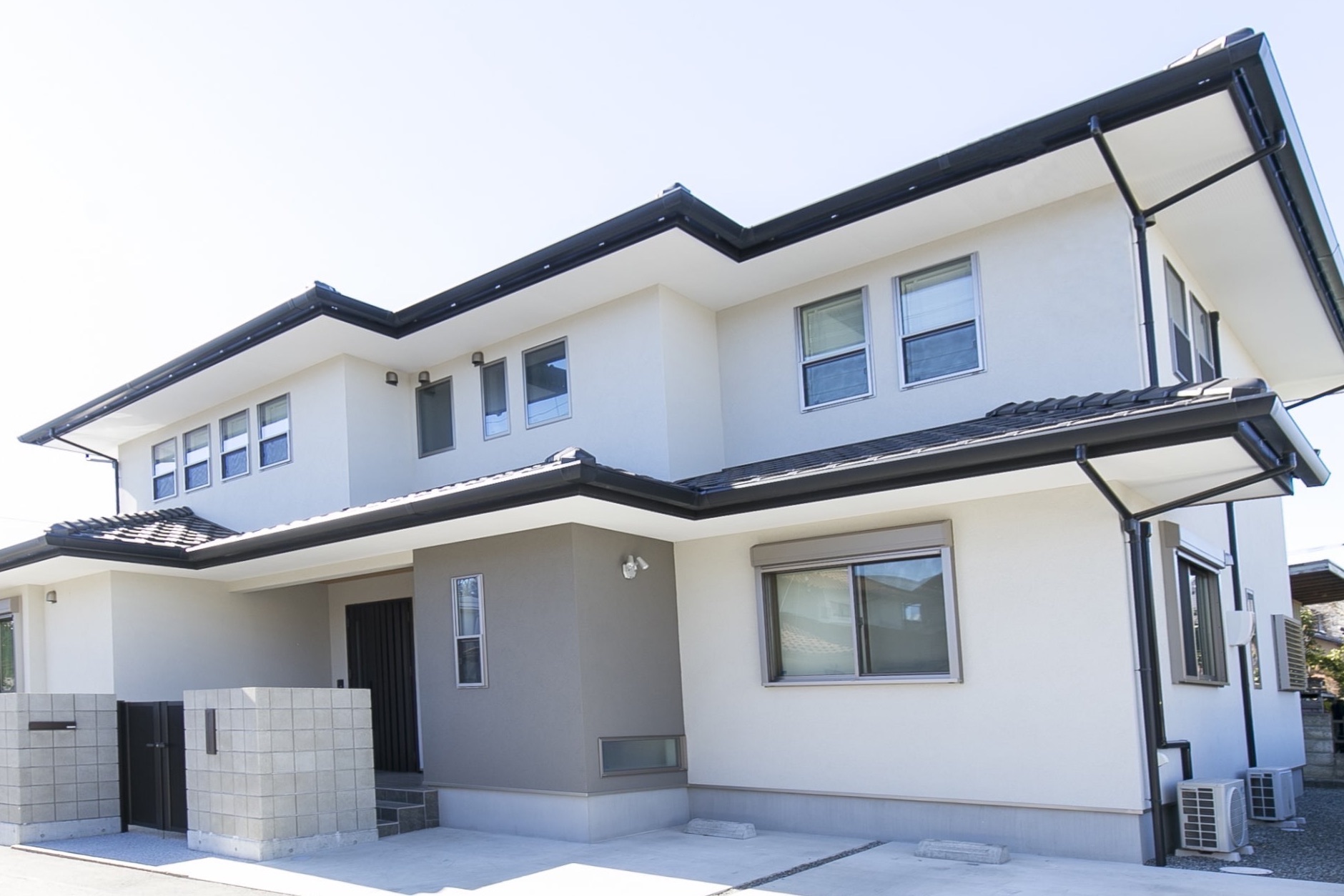 風土に合った「国産のヒノキ(4寸柱)」をメインに、がっしりと家づくり。ご要望に沿ったデザインと間取りの耐震等級3住居を実現いたしました。